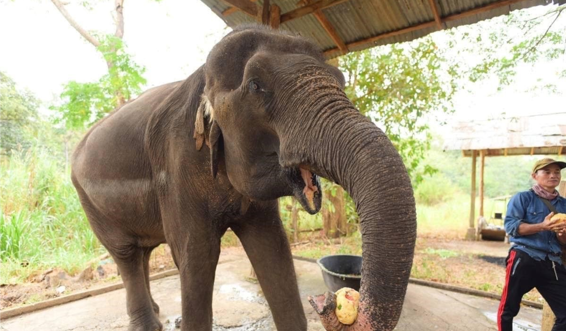 Here, Somboon’s days are no longer filled with fear or forced labor. She is surrounded by kindness, nourished with a variety of fresh foods, free to wander through the forest, and delighted by her favorite fruit — sweet mayong chid (Marian plums).