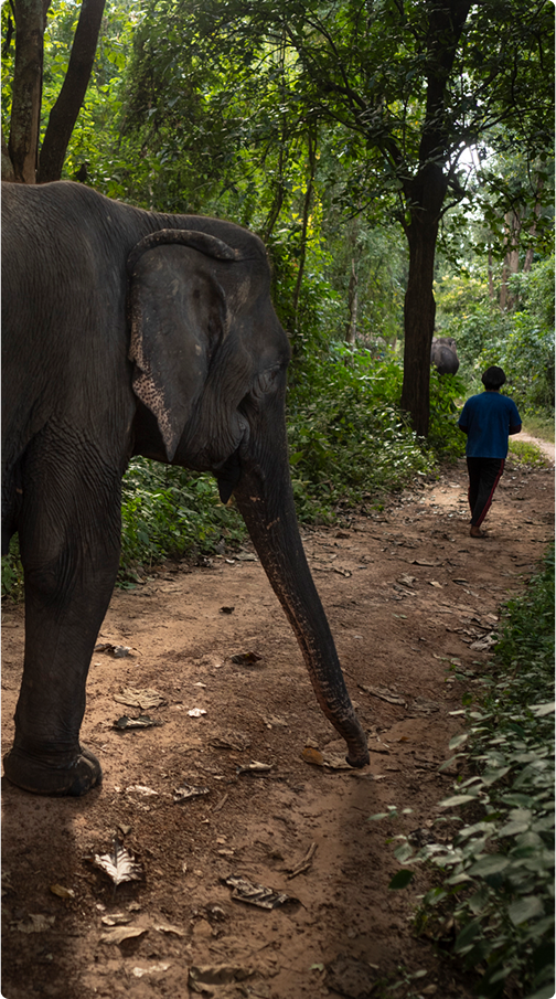 We do not enforce a “no hook” or “no chain” policy as a slogan. Instead, we focus on context, safety, and welfare—for both elephants and their mahouts.