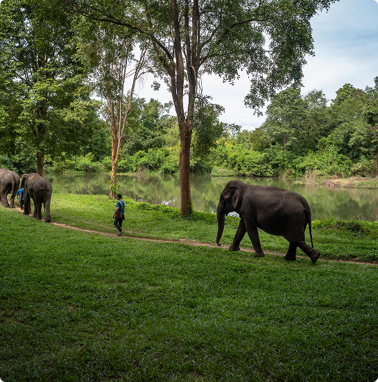 Many of our mahouts come from the Karen and Kui communities, where elephant knowledge has been passed down for generations. Their role is not to control, but to care—with deep attention to signs like appetite, digestion, and mood.